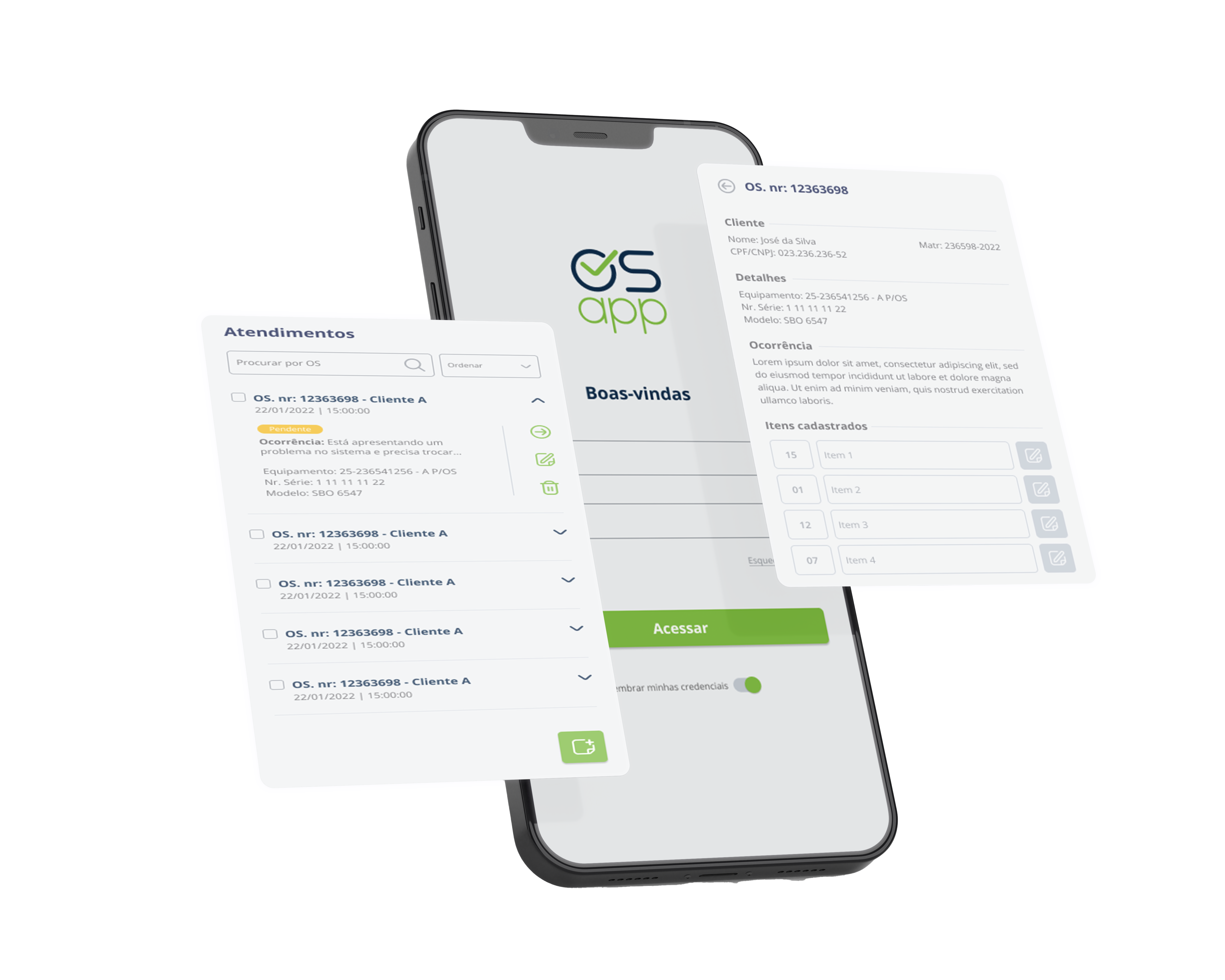 As soluções OS APP compreendem o Recebimento de OS, Apontamentos,